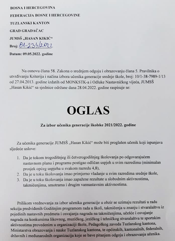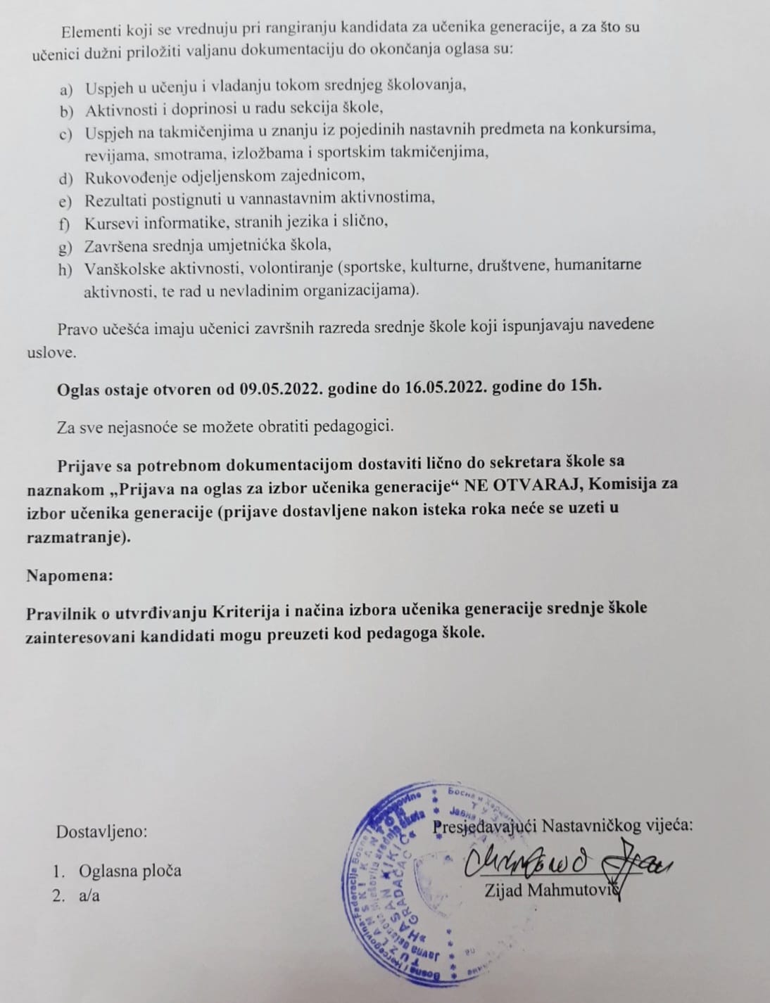 Navigacija članaka SVEČANA PRIREDBA POVODOM 06. MAJA- DANA ŠKOLE K O N K U R S za dodjelu stipendija posebno nadarenim redovnim učenicima
