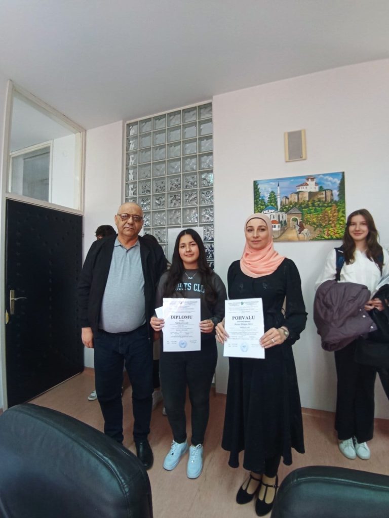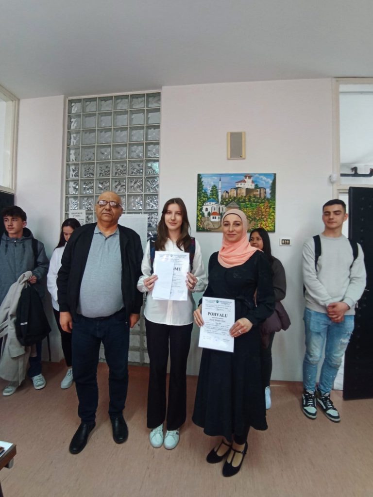 Prvo mjesto je osvojila učenica JU Gimnazije “Mustafa Novalić” Gradačac, Kavazović Emira. Čestitamo Emiri na plasmanu i želimo mnogo uspjeha na Regionalnom takmičenju. Diplome kao i nagrade koje je dodijelio Medžlis IZ-e Gradačac dodijelili su direktori naših škola Mirsad Djedović i Zijad Mahmutović.