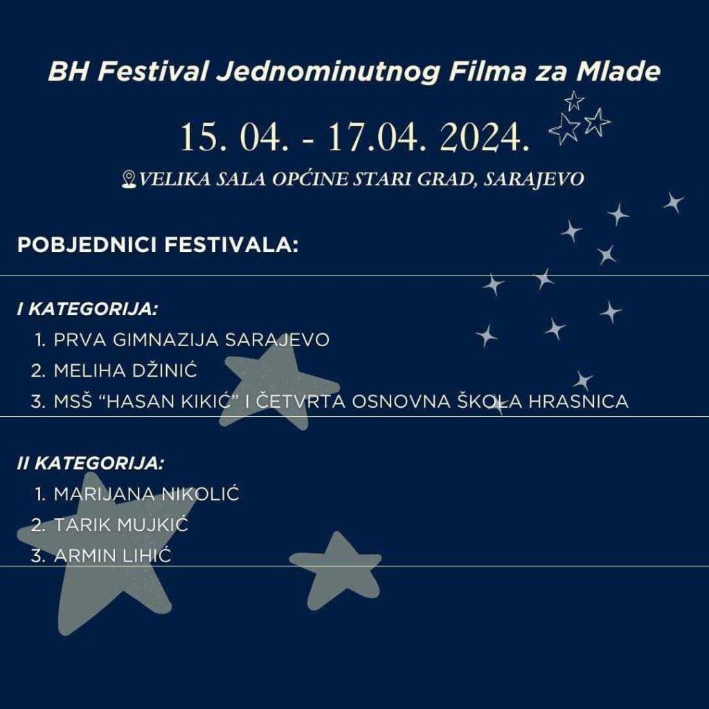 Selmin, Ajla,Tarik, Salmir, Lejla, Ajnur, Nela, Lamija, Amna i mnogi drugi koji se pridružuju, obradovali su nas novom nagradom za jednominutni film na BiH Festivalu jednominutnog filma.