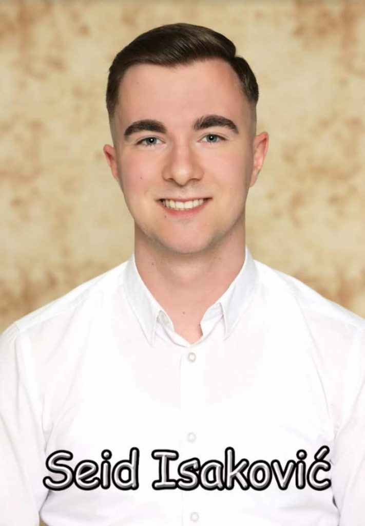 Zovem se Seid Isaković. Rođen sam 17.02.2005. godine u Tuzli. Živim u Gradačcu, gdje sam završio JU Osnovnu školu „Dr.Safvet-beg Bašagić“ kao odličan učenik. Nakon toga sam upisao Ekonomsku školu u JU MSŠ „Hasan Kikić“. Sve četiri godine sam imao prosjek 5.0 te primjerno vladanje. Pored odličnog uspjeha, sudjelovao sam u radu raznih školskih sekcija, učestvovao na raznim takmičenjima od školskog do međunarodnog nivoa te predstavljao ekonomski aktiv i školu kroz razne vannastavne aktivnosti, što mi je dušu istinski dodatno ispunjavalo. Pored srednjoškolskog obrazovanja, bavio sam se sportom te učenjem stranih jezika. Plivanje sam trenirao 10 godina u Plivačkom klubu „Spartak“ Gradačac. Što se tiče stranih jezika, perfektno govorim engleski i turski jezik. Najveća zahvalnost za moj uspjeh prije svega ide mojim roditeljima koji su mi pružili podršku u svakom koraku mog života. Također, zahvalan sam i profesorima koji su svojim stručnim znanjem, posvećenošću i nesebičnim savjetima ne samo obogatili moje obrazovanje, već i osnažili moj rast i razvoj kao pojedinca. Također, obrazovanje planiram nastaviti na Ekonomskom fakultetu Univerziteta u Tuzli. Što se tiče budućih generacija, želim vam reći da postavite jasne ciljeve, budete uporni i tražite podršku i mentorstvo kad god vam je to potrebno.